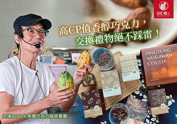 ~屏東內埔,安心手作「什麼禮物可以收穫甜蜜和笑容?那一定是巧克力莫屬!」牛角灣巧克力咖啡農園的賴錫賢老闆,抱著「不只對土地友善,也要對整個生態系友善」的理念...(詳細閱讀)
