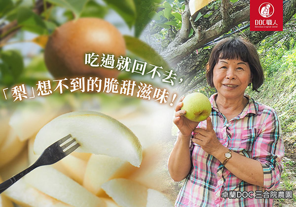 「因為長輩一句梨子很好吃,讓三合院農園一直堅守友善種植,讓每顆到消費者手上的牛奶梨清爽多汁又脆甜。」
