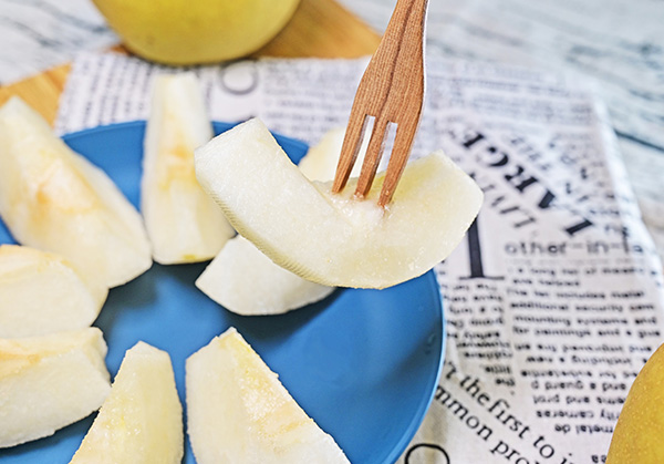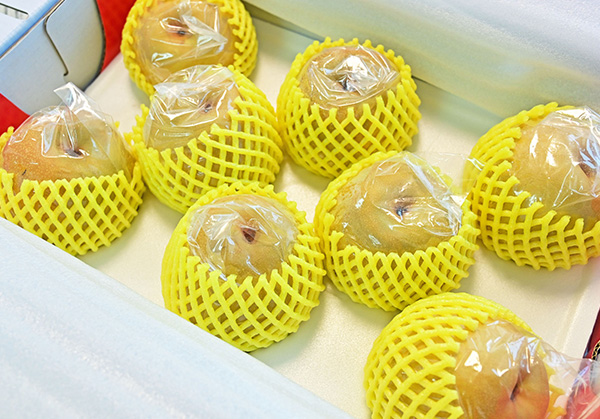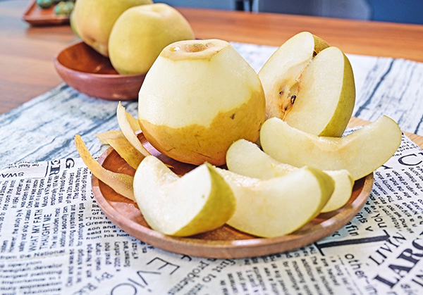 三合院農園裡的果樹,都是與自然共生,而且享受益生菌和牛奶灌溉,加上老闆、老闆娘細心照料每棵樹,適時給予水和有機液肥,所以每顆梨子的外型都渾圓飽滿,果肉則是香甜細緻又多汁,而且他們堅持果實熟度足夠才會採收出貨,因此消費者一收到,只是剛開箱,就會聞到濃郁的果香味。