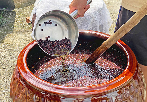 這款釀給家人食用為出發點的醬油,有著不能妥協的堅持,就是原物料一定要單純,只用黑豆、水、麥芽糖、海鹽、紅冰糖,再以水式後熟的方式進行釀造。每年六月到九月,在陶甕裡放入黑豆麴、水、鹽進行至少二十二天的日曬,經過多次的過濾、長時間熬煮,加入紅冰糖、麥芽糖,煮出顏色、香氣、品質都很棒的優質醬油。
