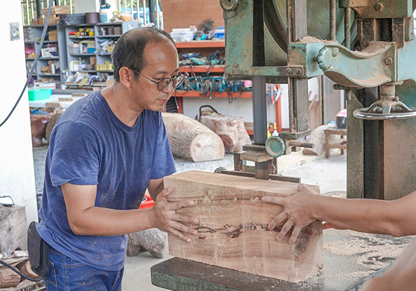 對木作的喜愛,讓賴瑞儒老闆發揮敏銳的觀察力,只要看到別人的作品,他就會去思考對方是怎麼雕刻出來,並且反思如果是自己,可以用哪些技法來呈現,不斷的學習與實踐,也摸索出一套自己的創作流程,像是木材的選用,因為樟木有著交錯型的木紋,還有宜人的木頭香,讓他多以樟木來創作。