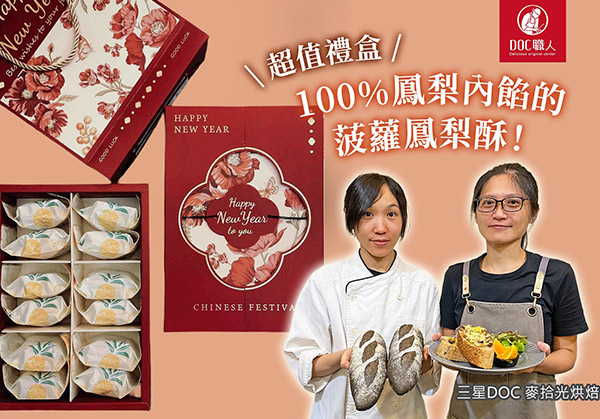 這次年節,她們嚴選法國天然奶油,研製出酥脆、酥、酥鬆,三種不同口感層次的餅乾;以及用完美比例的土鳳梨和金鑽鳳梨,調製酸甜不膩口的內餡,搭上香酥外皮的菠蘿鳳梨酥,一份禮盒,一次滿足小孩和大人的味蕾!