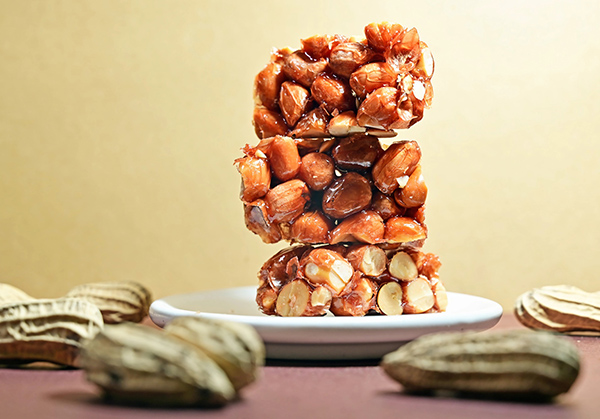 主打低糖酥脆不黏牙的武賀家花生糖,選用自家友善種植的九號花生,人工篩選出飽滿、大顆的花生顆粒,加入麥芽糖以物中小火長時間熬煮,直到麥芽糖熟透、不黏的程度,才起鍋定型,冷卻後的花生糖裹著薄薄的糖衣,一口咬下,酥脆口感令人驚艷,不只小孩愛吃,連長輩也能開心品嘗。