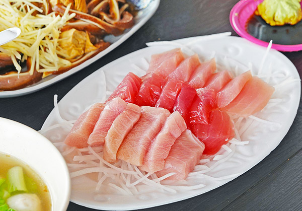 許多在地人,每天一早會到丸昌漁行,點一份百元生魚片,再搭配旁邊攤位的麻醬麵、小菜,豐富又不平凡的早餐,難怪喜歡體驗當地文化的觀光客,也認準這一攤。