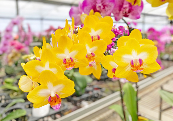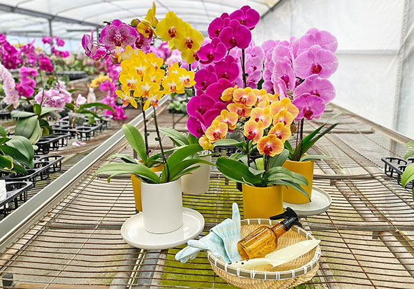 研帥蘭園除了建造溫室照顧蝴蝶蘭,也引進智慧農業的設備,隨時掌握溫室的溫濕度,加上「不過度干擾」的原則,只在適當時間對蘭花進行澆水與施肥,遇到病蟲害才使用防治藥劑,因此蘭園裡培育出來的蘭花,不僅花色飽滿、花期更持久。