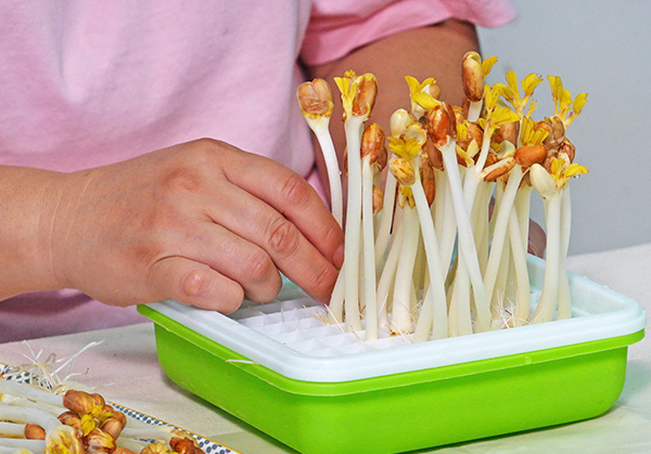 為了家人健康,而投入花生芽菜種植的YoGo芽菜工坊,因為芽菜的避光屬性,何子軒老闆娘和老闆,建造溫室,讓芽菜們在遮光、溫溼度適宜的環境下成長,種出一株株猶如巨無霸的花生芽菜,口感爽脆又新鮮多汁,川燙後不論是製作生菜沙拉,或是包飯捲,都是美味可口的家常好料理。