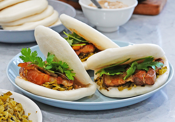 也因為每個環節都是親力親為,所以不論酸菜、福菜、還是梅乾菜,傳承了長輩手藝的好味道,而它們各用清炒、滷肉等烹飪方式,製作梅干扣肉、酸菜刈包......,讓每道料理輕鬆提升風味層次。