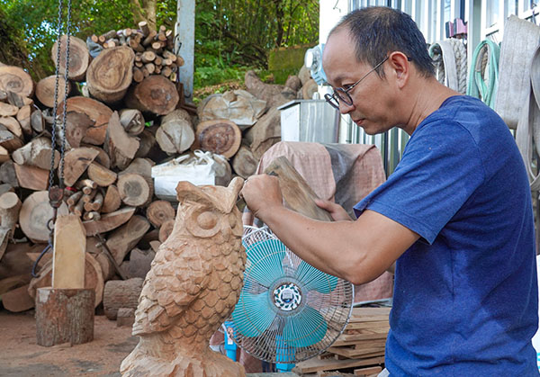 走進天然奇木,空氣中瀰漫著淡淡的樟木香氣,店內陳列了許多木藝品,走獸、貓頭鷹、桌椅,都是賴瑞儒老闆和他父親的親手雕刻而成的作品。因為熱愛木雕,賴老闆不停增進自己的技術,做出讓客人喜愛的桌椅、收納盒、展示物件等木雕作品,同時,也推出多個手作項目,帶大家從手作,認識木雕文化的美。