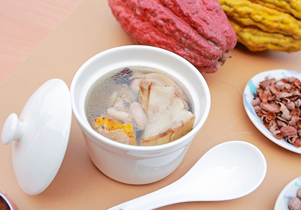 這樣優質的可可果,老闆娘更發揮創意,除了製作滑順濃郁的巧克力,還將整顆可可鮮果與雞湯一起熬煮,湯頭帶著淡淡的果香氣,口感更為清爽甘甜,顛覆大家對可可的想像,也重新認識它的多元風貌。