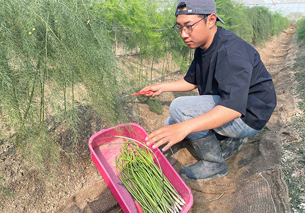 因為擔任無人機代噴技術人員,滿天星農園的二代廖佳皇先生,看見家鄉的砂質土壤極適合栽種綠蘆筍,在朋友的推薦下,一頭栽入種植,他用有機資材,加上適時給予水分和營養,因此每根自然長成的綠蘆筍,筍尖飽滿緊實、筍莖挺直外表翠綠有光澤,口感更脆嫩多汁、清爽清甜。