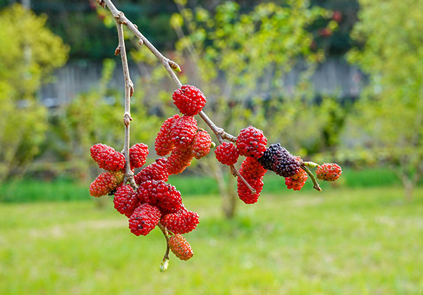 以自然農法、不用藥、不施肥照顧桑椹果樹的阡陌友善農場,選擇讓桑葚果實慢慢長大,經過時間與陽光的醞釀,讓桑葚有足夠時間由青轉紅、再轉紫黑色,並累積恰到好處的糖分,直到自然熟成,進行人工採收,沒有過多干擾的栽種方式,保留了桑葚最真實、自然的酸甜。