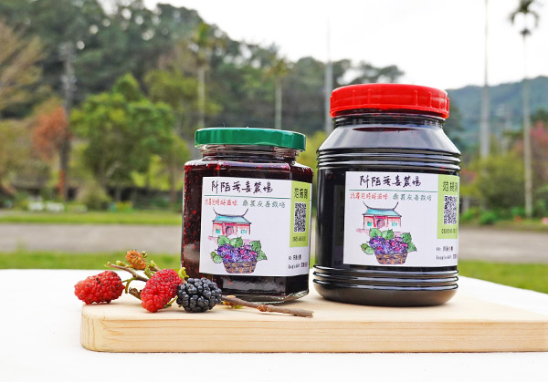 阡陌友善農場的范揚瀾大哥,還會取一部份果實,佐以砂糖慢火熬煮製作果醬,無論是早晨加入優格品嘗,或是午後調製一杯沁涼的桑葚氣泡飲,都能瞬間療癒忙碌的日常。