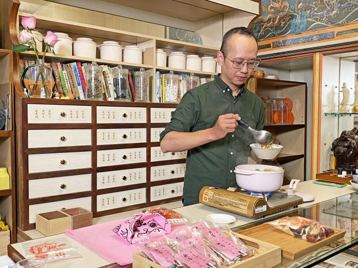 面對年輕族群對中藥文化,越來越陌生的現象,陳老闆從裝潢著手,跳脫傳統的框架,以自然的木造風格,打造溫暖、舒適的店內氛圍,引人佇足逗留外,也成功翻轉傳統藥房沉悶的印象。除此之外,他推出加入肉桂、八角、茴香等藥材的鍋煮奶茶包,吸引愛喝奶茶的族群,期待藉由這樣的方式可以取代年輕人喝手搖飲的習慣,鼓勵大家在家花個十分鐘,只要用小火乾炒藥材與香料,直到香氣出現,再加入紅茶包與鮮奶,輕鬆煮出一鍋帶著淡雅藥香、濃醇奶香,以及心意滿滿的奶茶,和家人朋友一起享用,不只更健康,也能讓感情更凝聚。