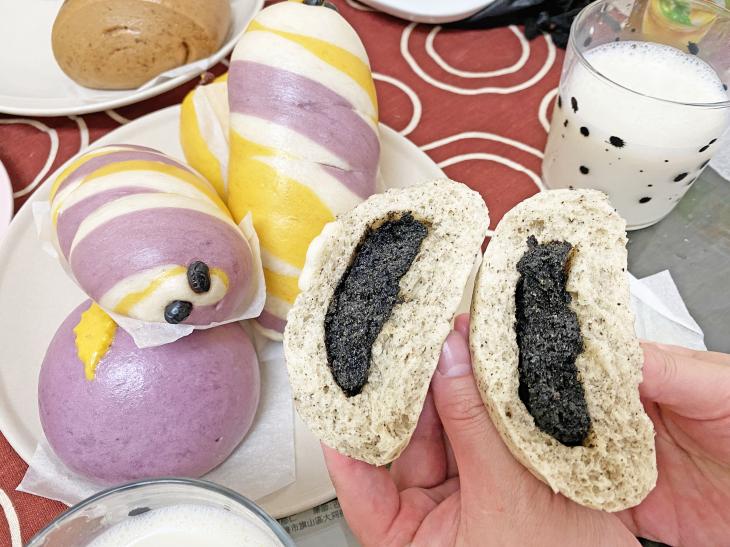 對重視健康的銀髮長輩來說,減少糖份的白饅頭,口感不只Q彈有勁,搭配一杯無糖豆漿,就是最棒的健康早餐。除此之外,謝老闆還加入南瓜、紫薯、芋頭、黑糖等在地食材,採購、清洗到加工毫不馬虎,即使近年原物料不斷上漲,內餡仍紮實飽滿,而且售價依然親民,讓每位客人吃得安心又開心。