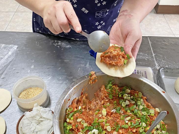 「謝老闆手作包子」的包子、饅頭,原物料很簡單,只有麵粉、酵母和水,再加上在地食材,經過手工揉製、發酵、蒸煮製成。對於原物料的選用,謝老闆有一套嚴謹的標準,他固定週五親自到市場採買當季的南瓜、芋頭、紫薯、地瓜等根莖類,而且買回來的食材他都會親自加工,像南瓜他會靜置後熟,確認口感狀態最佳,才會加入麵團製作成饅頭,還有他也會手工切蔥花,因為比起機器切出的蔥段,更能保留它的香氣和風味。從原料選購、處理、製作到出爐,對任何一個細節毫不馬虎的執著,讓「謝老闆手作包子」成為許多在地人最信賴的日常滋味。
