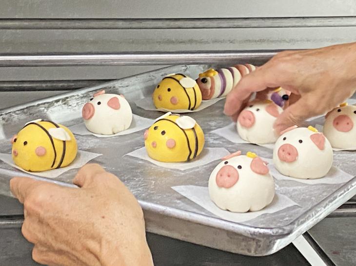 除了一般常見的包子、饅頭,最特別的是,謝老闆和老闆娘,為了店裡的小客人,特別推出動物造型的包子,他們用薑黃、紅麴、抹茶等原物料,讓麵團帶有食材的天然顏色,手工製作出可愛、圓滾滾的小豬或蜜蜂,只是因為工序太繁瑣,不是店內的常駐品項,如果想吃的朋友記得先跟謝老闆詢問、預訂喔!