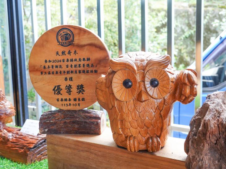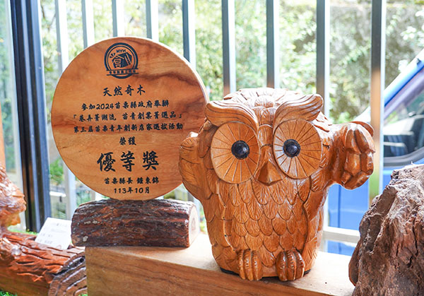 「不論是想找大型的木作家具,或是小型的吊飾、首飾盒,都歡迎來到天然奇木,如果想認識木頭、玩木頭,還有紋理木盤雕刻手作,等你來體驗!」 走進天然奇木,空氣中瀰漫著淡淡的樟木香氣,店內陳列了許多木藝品,走獸、貓頭鷹、桌椅,都是賴瑞儒老闆和他父親的親手雕刻而成的作品。因為父親從事木雕行業,耳濡目染下,賴瑞儒老闆一直很喜歡木頭工藝,加上他也很喜歡木頭本身質樸的溫暖,因此在父親面臨退休,要將事業交棒時,他毫不遲疑地承接下來,用雙手延續傳統技藝,也打造自己風格的木藝創作。